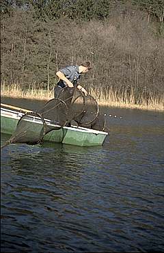 werden die gefangenen Fische zur hinteren Kehle gedrängt...
